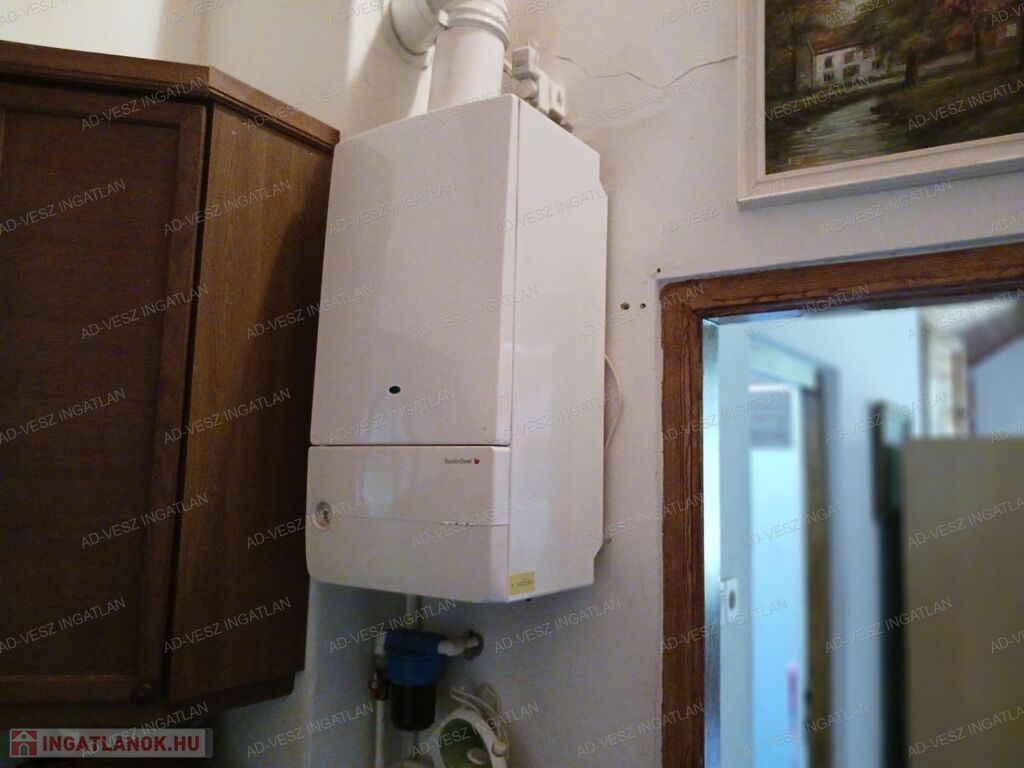 első emelet: vízteres kandalló radiátorokkal, hűtő-fűtő klímával