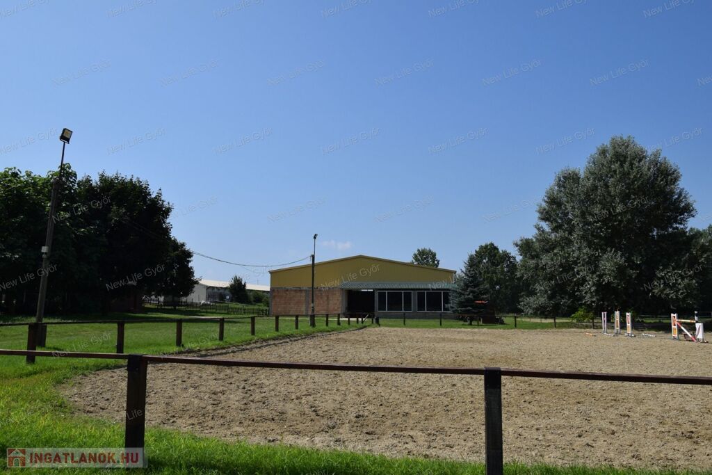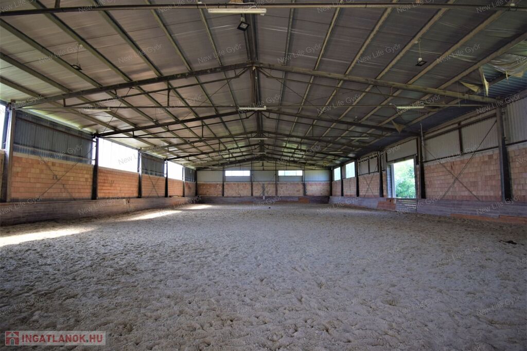 -966 m2-es csarnok/fedeles lovarda, magasított nézőtérrel, tégla oldalfallal, acél vázszerkezettel, lemeztetővel (23X42,