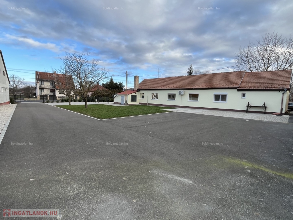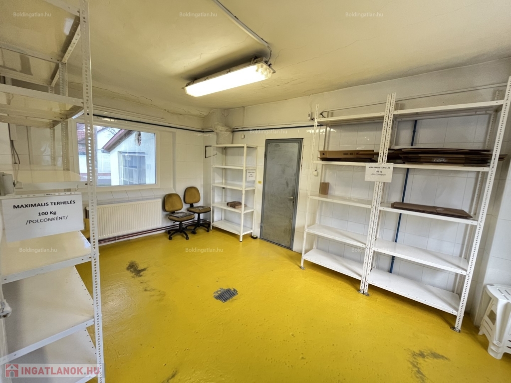 Kaposváron (Kaposfüred városrészben) az Állomás utcában rendezett környezetben található, 2024-ben felújított telephelyen 223 m2-es raktár-iroda épület + 190 m2 akár élelmiszergyártásra is alkalmas épület kifejezetten hosszú távra - kizárólag egyben kiadó. A 223 m2-es épületben 3 iroda, közlekedő, konyha, zuhanyzó-wc, valamint egy 9 m2-es és egy 144 m2-es raktár 2 db garázsajtóval, akár 3 tonna teherbírásra erősített födémmel helyiségek találhatóak. A 190 m2-es épületben előtér, labor, 2 gyártóhelyiség, külön férfi és női zuhanyzó-wc, garázs-kazánház helyiségek találhatóak. Az épületek fűtése Brötje kombi kazánnal és elektromos fűtőpanelokkal megoldott, valamint a kisebbik helyiségben Gree típusú hűtő-fűtő légkondicionálók is felszerelésre kerültek. Az épületek tökéletes műszaki állapotban vannak, az udvarban több teherautó is elfér, egy része térkővel borított. Az udvarra behajtás 2 db távirányítású kapun keresztül lehetséges, valamint kamerás riasztó rendszer is telepítésre került. Telek: 2.235 m2 Bérleti díj: 500.000.- Ft/hó + rezsi + 2 havi kaució (823) Amennyiben az ingatlan felkeltette az érdeklődését, kérem hivatkozzon a 823. számú ajánlatra! Irodánk címe: Kaposvár Irányi D. u. 9.