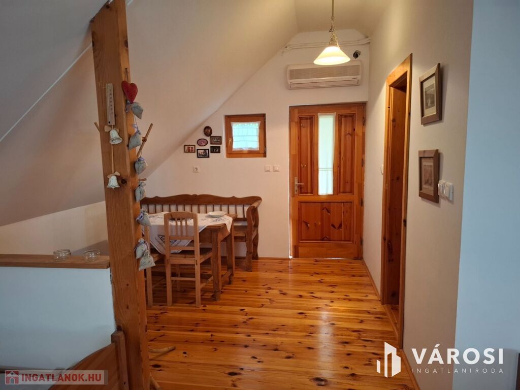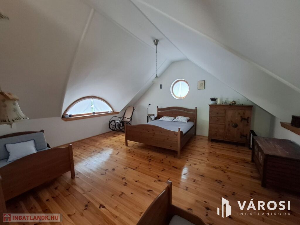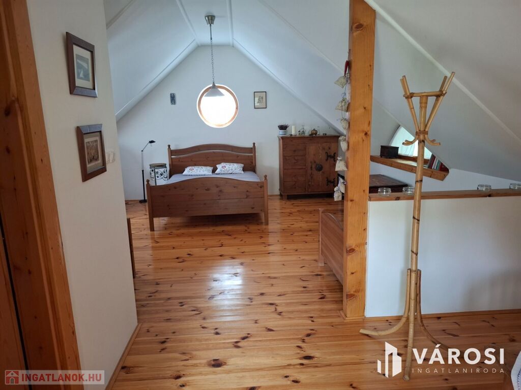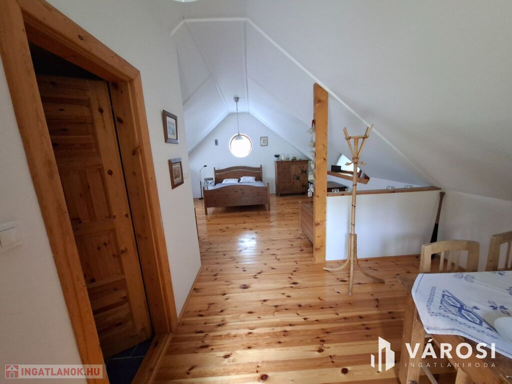 Az emelet külön bejárattal, terasszal és tágas nappali-hálószobával rendelkezik, ahonnan szintén részben balatoni panoráma nyílik.