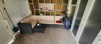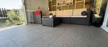 10 m²-es fedett, zárható terasz, elektromos redőnnyel a bejáratnál