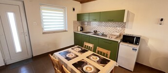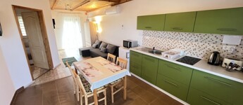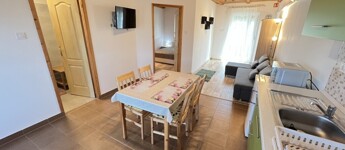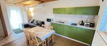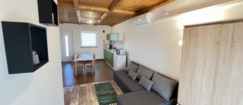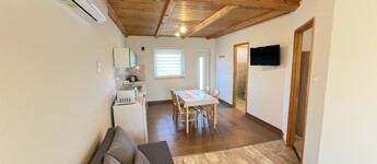 Buzsákon, Csisztafürdőn - külföldiek által kedvelt Balaton közeli településen - a Muskátli utcában, belterületi övezetben található, 2019-ben épület 76,72 m2-es újszerű állapotú üdülőház - eladó. Az épület 2 db 38,36 m2-es apartman. Mindkét apartmanban nappali-konyha-étkező, félszoba, fürdőszoba-wc, terasz helyiségek találhatóak. A telekre az apartmanokhoz 1 db vízóra és 1 db 32A. villanyóra került bekötésre. Az apartmanok fűtése és hűtése klímával, a meleg víz villanybojler megoldott, amelyet 2,5 kw. napelemes rendszer támogat, a szennyvíz emésztő gödörbe szikkasztón keresztül folyik. Mindkét apartmanhoz tartozik kocsibeálló, az udvaron szerszámos tároló és kerti bográcsozó, sütögető került elhelyezésre és leanderek, argentin selyemakácfa és törpe gránátalma bokor teszi hangulatossá a hátsó zöld területet, amely teljesen körbekerített. Az épületre külső 5 cm. szigetelés, a födémre 20 cm. üveggyapot lett elhelyezve. Az üdülőház befektetésre is kiválóan alkalmas, 300 méterre található a kisvasút állomása, 5 km.-re fekszik Fonyód, amit aszfaltos úton lehet megközelíteni, illetve 800 méterre található a gyógyfürdő, megépítették a napelemes parkot és egy sportlövészeti terület áll rendelkezésre akár versenyek céljából is. Telek: 492 m2