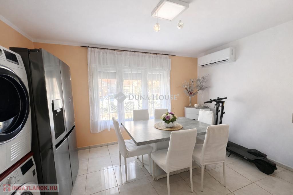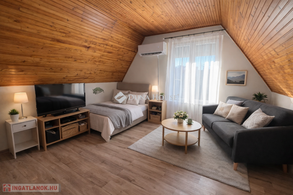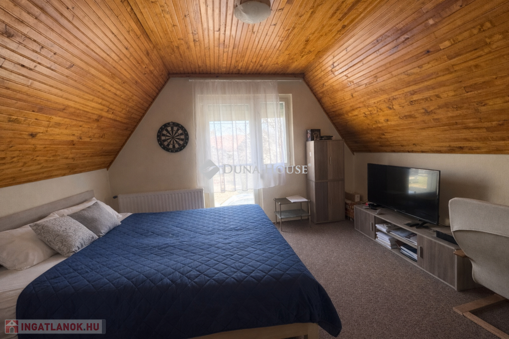Eladó kétszintes üdülőház saját kerttel Harkány üdülőövezetében!Harkány kedvelt üdülőterületén eladóvá vált egy belső kétszintes kialakítású, 80 m²-es hangulatos házikó, amelyhez 212 m²-es saját használatú kert tartozik.Az ingatlan elrendezése praktikus és kényelmes, akár állandó lakhatásra is alkalmas:Alsó szint:konyhaétkezőnappali egy légtérbenfürdőszoba WC-velFelső szint:két hálószobanappali / társalgókülön WCA ház fűtéséről egy vízteres kandalló gondoskodik, amely radiátorokon keresztül biztosítja a központi fűtést az egész ingatlanban. Emellett minden helyiség klímaberendezéssel felszerelt, amelyek hűtésre és fűtésre egyaránt használhatók, így az ingatlan egész évben komfortosan lakható.A kert ideális pihenésre, kertészkedésre vagy családi kikapcsolódásra.Az ingatlan kiváló választás:nyaralónak,befektetésnek,vagy akár állandó otthonnak is Harkány közkedvelt környezetében.További információért és megtekintésért keressen bizalommal!