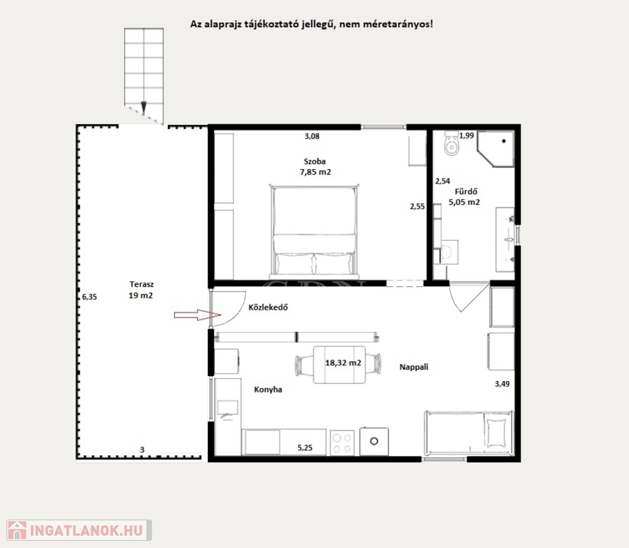 A bruttó méret a terasz 50%-át tartalmazza.