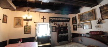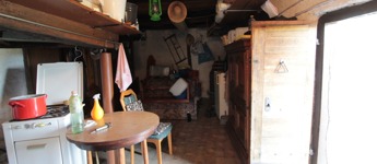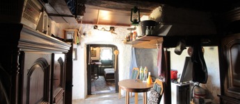 Belépve szemben egy régi „nyílt kemence” amit régebben füstölésre és főzésre használtak, jobbra egy helyiség és balra egy szoba található. Vizeshelyiség nincs kialakítva!