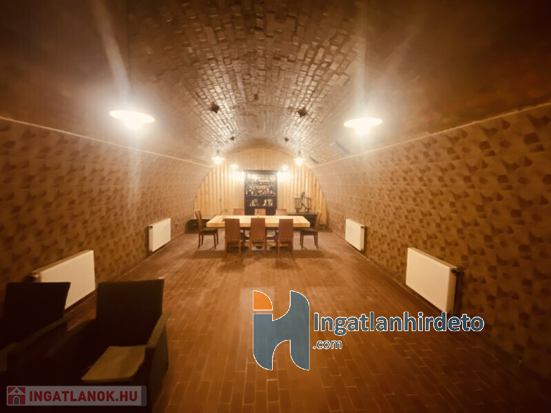 A pinceszinten található egy 53 nm alapterületű rendezvények tartására is alkalmas tégla boltozatos helyiség.