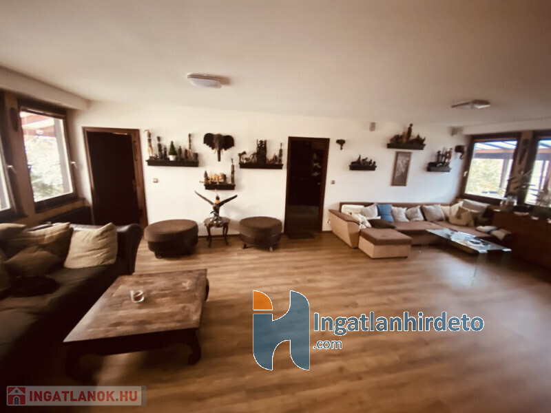 Elhelyezkedése: Zöldövezet Emeleti elhelyezkedés: Földszinten Állapota: Jó Komfort besorolása: összkomfortos Építési éve: 1990 Alapterülete: 298 m2 Telekterülete: 2 245 m2 Szobák száma: 8szoba Közművek: Gáz, Víz, Villany Gázellátás: Vezetékes Vízellátás: Vezetékes víz Melegvíz-ellátás: Gázkazán Áramellátás: 230V/380 V Fűtés módja: Gáz Fűtés típusa: Cirkó Homlokzat állapot: Jó Építési mód: Könnyűszerkezet Tető formája: Magas Tető anyaga: Bitumen zsindely Parkolási lehetőség: Garázsban, Parkolóban Kilátás: Utcafronti kilátás, Udvari kilátás, Hegyi panoráma, Parkra nyíló kilátás Napelem: Nincs Jellemzői: Alacsony rezsi, Jó közlekedés, Két bejárat, Redőny, Fűtött garázs, Légkondicionáló, Étkező, Udvari terasz, Beépített szekrény, Beépített konyhabútor, Autóbeálló, Kert, Kerítés, Ipari áram, Parketta burkolat, Egyedi vízóra , Térkő, Zöldterület, Kapunyitó automatika Energetikai besorolás: Nincs adat Egyéb jellemzők: Terasz, Melléképület, Pince Tv, Internet: Kábeltévé Terhelések: Tehermentes ingatlan
