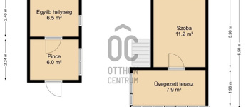 - A házban az emeleti részen egy szoba és egy üvegezett terasz, míg a földszinten két helyiség található,